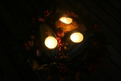 Tegnap eszembe jutott, milyen igazságtalan dolog, hogy csak a nagy tököket vájják ki lámpásnak, és csak azokba tesznek mécseseket. Elképzeltem, mennyire rosszul eshet ez a kis tököknek, és ha lenne tökügyi ombudsman, nyilván fennhangon tiltakozna a méretügyi diszkrimináció ellen... De gondoltam, én aztán nem fogom kirekeszteni a hangulatvilágításból a kis tököket, úgyhogy kiválasztottam hármat, hogy ők legyenek az úttörők a pici dísztökök mécsestartóvá válásának rögös útján :-)