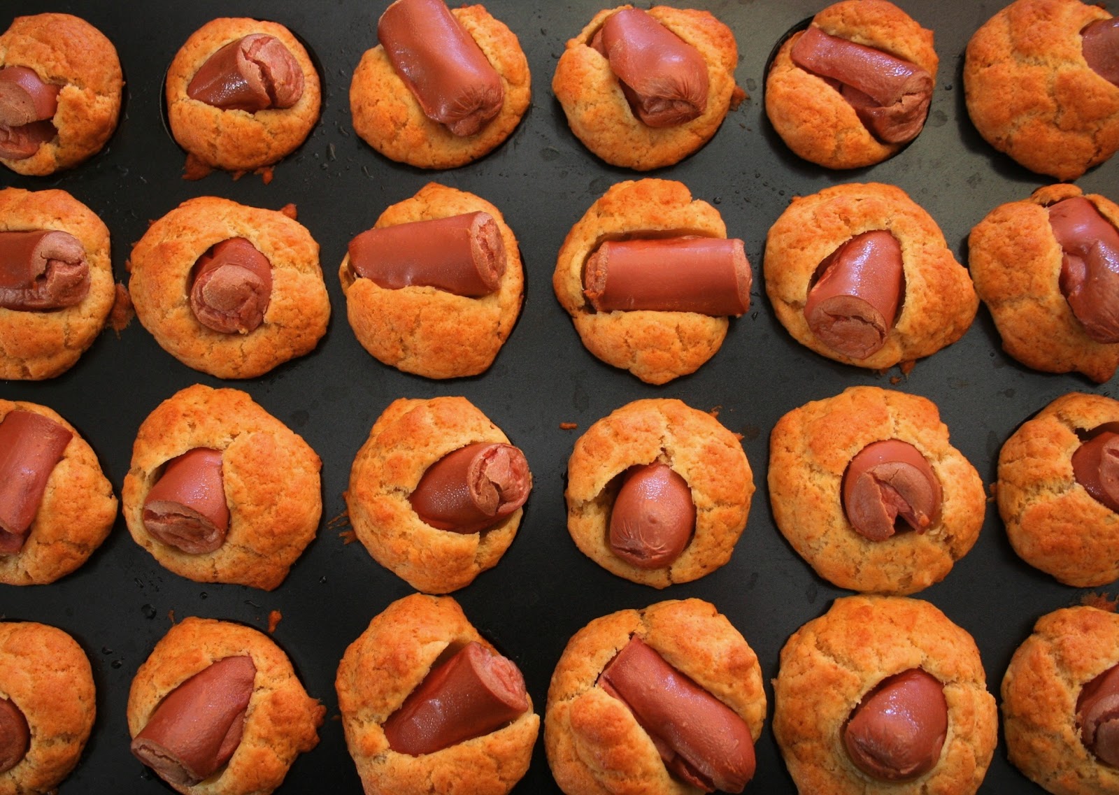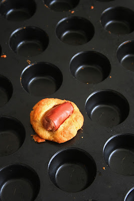 A születésnapi kalózbulira készülve gondolkoztam nagyon gyorsan elkészülő, laktató, gyerekek számára is népszerű falatkákon. Először a virslihajóra gondoltam, de még ennél is kevesebb macerát akartam - akkor jutott eszembe a hot dog, muffinformában, és körbenézve a neten találtam is egy nagyon jó kis receptet, amin csak egy egészen kicsit változtattam, mert éppen így tökéletes, ahogy van. (Kicsit csalódott is voltam, hogy mégsem nekem jutott először eszembe... :-) )