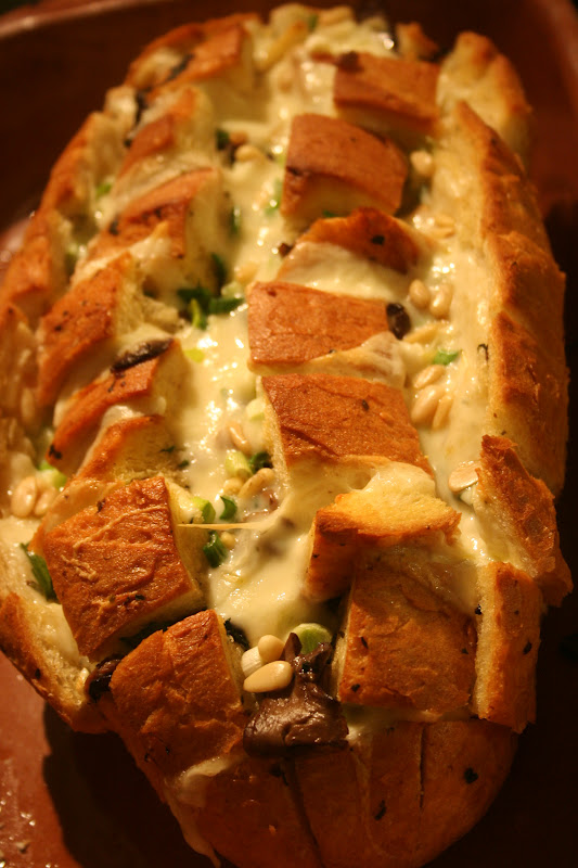 Tálaljuk frissen, mindenki tépjen belőle kedve szerint - egyszerűen mennyei. Azok az olvadt sajtos-pirított gombás álompuha kenyérdarabok... hmmm.