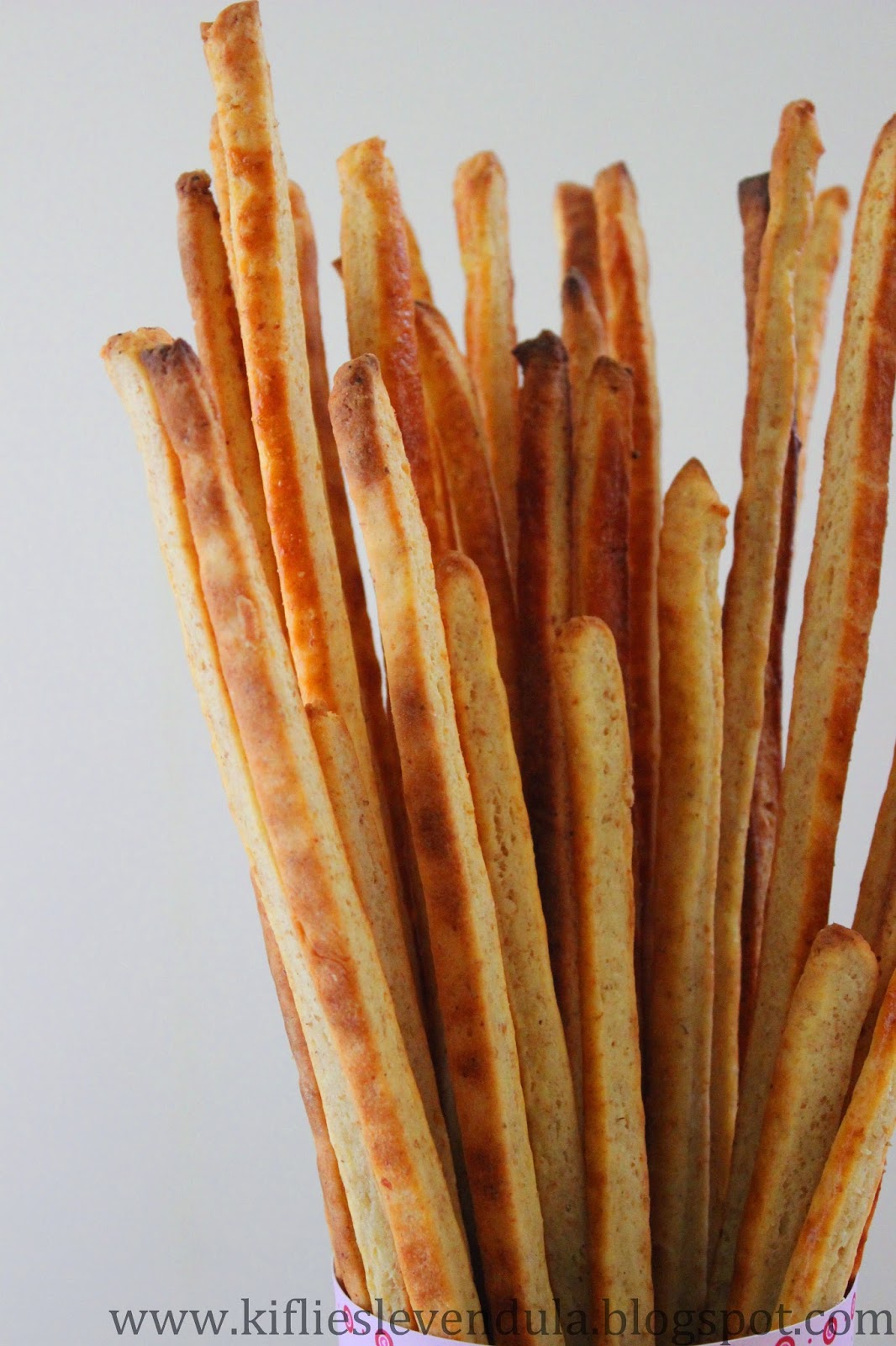 A sütőt melegítsük elő 180 fokra, a rudakat vágjuk vékony szeletekre, és tegyük sütőpapírral borított tepsibe. 13-15 percig süssük őket, míg szép aranyszínűek nem lesznek.